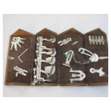 Vintage Wooden Fold Out Sewing Box with Assorted Sewing Machine Pieces, Patented 1839 1lb1oz