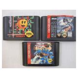 Three Vintage Sega Genesis Game Cartridges including Mazin Saga Mutant Fighter, Batman Forever, and Ms. Pac-Man, games have been tested and work properly 6oz