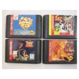 Four Vintage Sega Genesis Game Cartridges including Animaniacs, Taz in Escape from Mars, Toy Story, and The Lion King, games have been tested and work properly 9oz