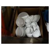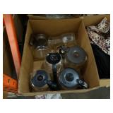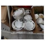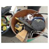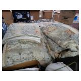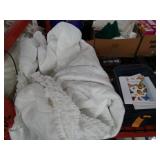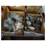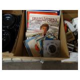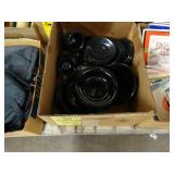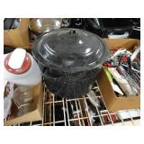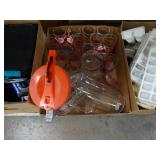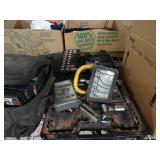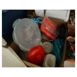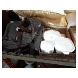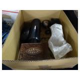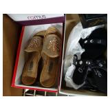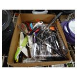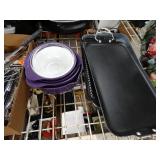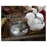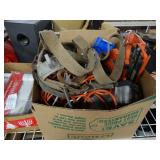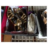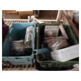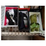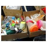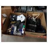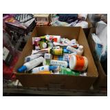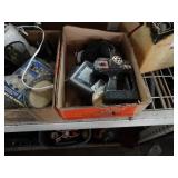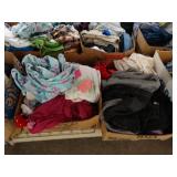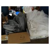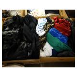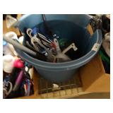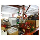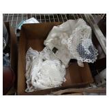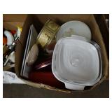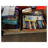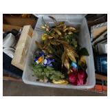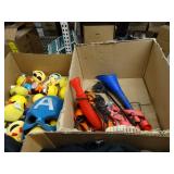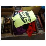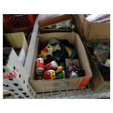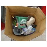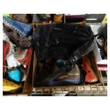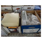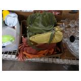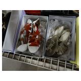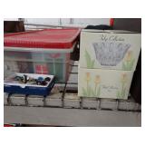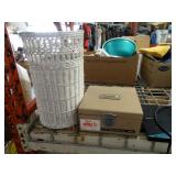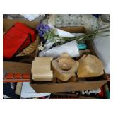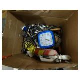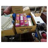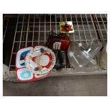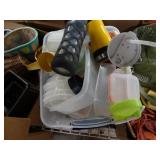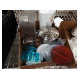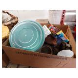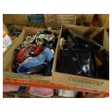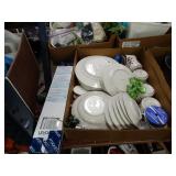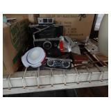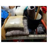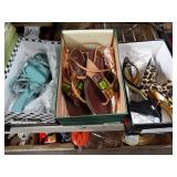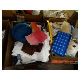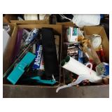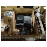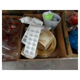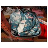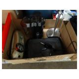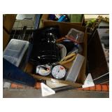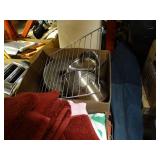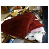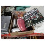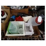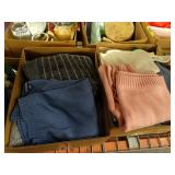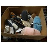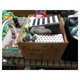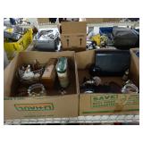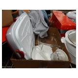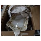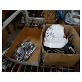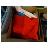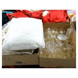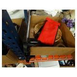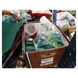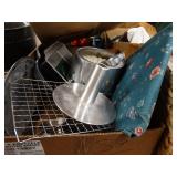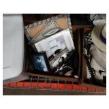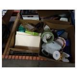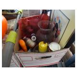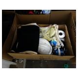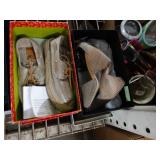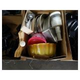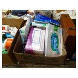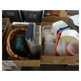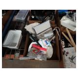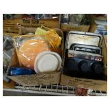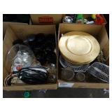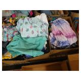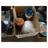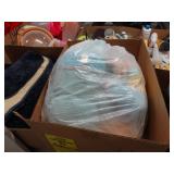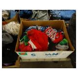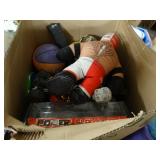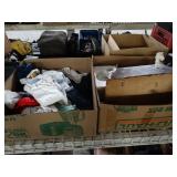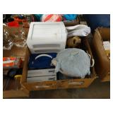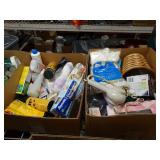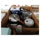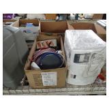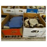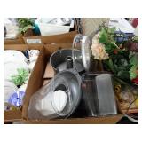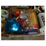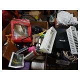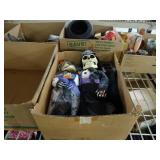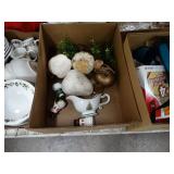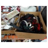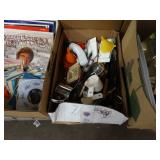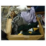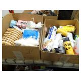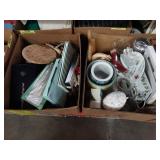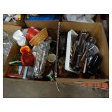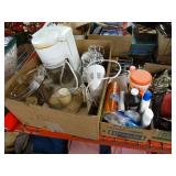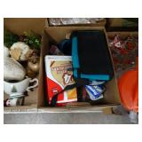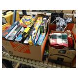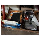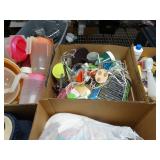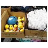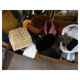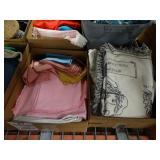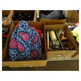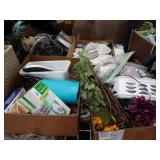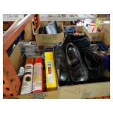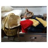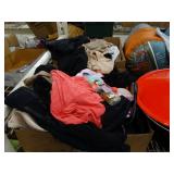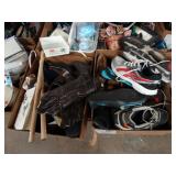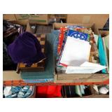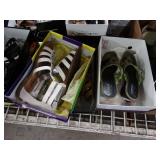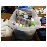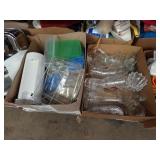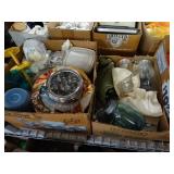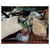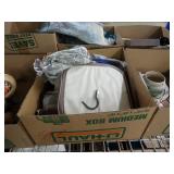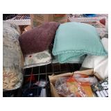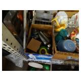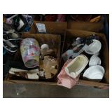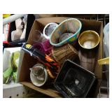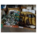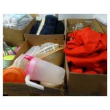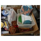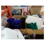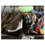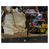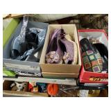 Box lots with linens, kitchenware, decor, tools, toys, shoes