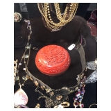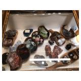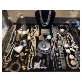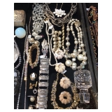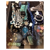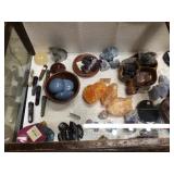 All the pretty things are up front with Lila & Linda.. great names like Monet brooches, Sandor rose brooch, a Helbro’s women’s watch, Meda .925 ring, Mont Blanc cuff links, Swank cuff set. Brighton, Carol Star and Kramer bracelets, a Sarah Coventry ring to vintage costume jewelry, an assortment of sterling, a 14k jade ring to handcrafted wooden pens. A selection of blue coral, labradorite, amethyst, selenite hearts, a hematite necklace to agate slice and tigers eye pendants to an art deco nude sculpture.