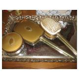 LIVING ROOM SOFA AND 3 TABLE SET, CORNER MAHOGANY MIRRORED CURIO CABINET,