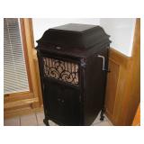 HOUSEHOLD, COLLECTABLES, TOOLS, AND MISCELLANEOUS: Dining table with 4 chairs, washer and dryer (almost new and very nice), dining table with 6 chairs, piano & bench, refrigerator, two (2) sofas, end tables & coffee tables, 48" flat screen TV, recliner, Victrola (in working condition), sound bar, VCR's and DVD players, round picture, mirrors, five (5) piece king bedroom suite, dresser, headboard, small desk, violin in case, TV, world globe, dishes, cookware, quilts, lamps, storage racks, clock, dresser with mirror, antiques, dresser with iron wheels, treadle sewing machine, trailer ramps, Victrola records, games, figurines, plants, jewelry armoire, leather chairs, two coat racks, space heaters, ladders, office chair, buffet, metal shelving, nearly new refrigerator, small tables, neon sign, bench grinder, vise, work tables, tools, back pack sprayer, ice cream machine, Stihl pole saw, Stihl chain saw, hydraulic dirt scoop, 6 feet 3 point disc, 3 point hitch, chain link fencing, T-posts, sprayer for 4 wheeler, many boxed items, plus other items too numerous to mention.