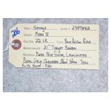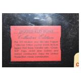 Firearms: 1. Colt – Mod. Single Action Army – 2nd Generation – 45 Colt Cal. Single Action Revolver – w/4 ¾” Barrel w/Sight – Blued w/Case Hardened Frame – w/Checkered Black Colt Eagle Grips – Appears Unfired w/Original Colt 2pc. Stage Coach Box 2. Colt – Mod. Single Action Army – 3rd Generation (P1740) – 44 Spl. Cal. Single Action Revolver – w/4 ¾” Barrel w/Sight – Blued w/Case Hardened Frame – w/Checkered Black Colt Eagle Grips – New w/Original Colt Box, Book & Hang Tag 3. Colt – Mod. Single Action Army – 3rd Generation (P1740) – 44 Spl. Cal. Single Action Revolver – w/4 ¾” Barrel w/Sight – Blued w/Case Hardened Frame – w/Checkered Black Colt Eagle Grips – New w/Original Colt Box, Book & Hang Tag 4. Colt – Mod. Single Action Army – 3rd Generation (P1840) – 45 Colt Cal. Single Action Revolver – w/4 ¾” Barrel w/Sight – Blued w/Case Hardened Frame – w/Checkered Black Colt Eagle Grips – As New w/Original Colt Box 5. Ruger – New Model Blackhawk (BNM-10) – 357 Maximum Cal. Single Action Revolver – w/10 ½” Barrel w/Front & Adjustable Rear Sights – Blued Finish – w/Silver Eagle Wood Grips – Unfired w/Box & Paperwork 6. Ruger – Mod. Blackhawk Convertible (S32X) – 32 H&R Mag./32-20 Win. Cal. Dual Cylinder Single Action Revolver – w/6 ½” Barrel w/Adj. Sights – Blued Finish – w/Ruger Eagle Wood Grips – w/2nd Cylinder – NIB w/Booklets 7. Ruger – New Model Blackhawk (S3840) – 38-40 Win./10mm Auto Cal. Dual Cylinder Single Action Revolver – w/6 ½” Barrel w/Ramp Front & Adj. Rear Sights – Blued Finish – w/Ruger Eagle Wood Grips – w/2nd Cylinder – NIB w/Ruger Box, Outer Box & Books 8. Ruger – New Model Blackhawk Convertible (S4440) – 44 Mag./44-40 Cal. Dual Cylinder Single Action Revolver – w/7 ½” Barrel w/Front & Adj. Rear Sights – Blued Finish – w/Ruger Silver Eagle Grips – Unfired w/Original Box, Both Cylinders & Manuals 9. Ruger – Mod. Single Six (RSSM) – 22/22 Mag. Cal. Dual Cylinder Single Action Revolver – w/6 ½” Barrel w/Sights – Blued Finish – w/Ruger Silver Eagle Grips – As New w/Original 2pc. Box, Both Cylinders & Manuals 10. Colt – Mod. Automatic – 25 ACP Cal. Semi-Auto Pistol – w/2” Barrel – Blued Finish – w/Checkered Silver Medallion Wood Grips – As New w/Original Matching Lift Lid Black Box, Manual & Cleaning Brush 11. Colt – Mod. Police Positive Special – 32-20 Cal. Double Action Revolver – w/4” Barrel w/Sight – Blued Finish – w/Factory Mother of Pearl Grips w/Silver Medallions – w/”CHS” Engraved Left Side of Frame – Mfg. in 1928 – As New w/Original Box w/Matching Label & Brush – A Must See!!! 12. Colt – Mod. Pre-Woodsman – 22LR Cal. Semi-Auto Pistol – w/6 ½” Barrel w/Sights – Blued Finish – w/Checkered Wood Grips – w/2 Factory Correct Two-Tone Mags – w/Period Correct Heiser of Denver, CO Mfg. Holster – Great Period Rig 13. Colt – Mod. New Police – 32 Cal. Double Action Revolver – w/4” Barrel w/Sight – Blued Finish – w/Colt Checkered Hard Rubber Grips 13-1. Ruger – Mod. New Vaquero – 357 Mag. Cal. Single Action Revolver – w/5 ½” Barrel w/Sight – Blued Finish – w/Checkered Black Synthetic Ruger Grips – NIB w/Accessories 14. Ithaca – Mod. M87 Featherlight 2 Barrel Set – 12ga. 3” Pump Action Shotgun – w/28” Interchangeable Choked, Vent-Rib Barrel w/Fiber Optic Sight & 20” Deerslayer Barrel – Matte Blued Finish – w/Oil Finished Pistol Grip Wood Stock w/Ribbed Forearm – NIB 15. Winchester – Mod. 9410 – 410ga. Lever Action Shotgun – w/24” Barrel w/Sights – Blued Finish – w/Checkered Straight Grip Wood Stocks – w/Full Length Magazine – NIB w/Accessories & Hang Tag Note: The Following Winchester Mod. 1300’s NWTF Are All Different, All w/Different Engravings & Stocks & All Are NIBs 16. Winchester – Mod. 1300 – NWTF – 12ga. 3” Pump Action Shotgun – w/22” Win. Choke, Vent-Rib Barrel – Matte Blued Finish – w/Enhanced Receiver on Both Sides w/Wild Turkey Scenes – w/Checkered Pistol Grip Green Laminated Wood Stock & Ribbed Forearm – NIB w/Accessories 17. Winchester – Mod. 1300 – NWTF – 12ga. 3” Pump Action Shotgun – w/22” Win. Choke, Vent-Rib Barrel – Matte Blued Finish – w/Enhanced Receiver on Both Sides w/Wild Turkey Scenes – w/Checkered Pistol Grip Green Laminated Wood Stock & Ribbed Forearm – NIB w/Accessories 18. Winchester – Mod. 1300 – NWTF Series III – 12ga. 3” Pump Action Shotgun – w/22” Win. Choke, Vent-Rib Barrel – Matte Blued Finish – w/Enhanced Receiver on Both Sides w/Wild Turkey Scenes – w/Checkered Pistol Grip Green Laminated Wood Stock & Ribbed Forearm – NIB w/Accessories 19. Winchester – Mod. 1300 – NWTF Series IV – 12ga. 3” Pump Action Shotgun – w/22” Win. Choke, Vent-Rib Barrel – Matte Blued Finish – w/Enhanced Receiver on Both Sides w/Wild Turkey Scenes – w/Checkered Pistol Grip Green Laminated Wood Stock & Ribbed Forearm – NIB w/Accessories 20. Winchester – Mod. 1300 – NWTF Youth & Ladies – 12ga. 3” Pump Action Shotgun – w/22” Win. Choke, Vent-Rib Barrel – Matte Blued Finish – w/Enhanced Receiver on Both Sides w/Wild Turkey Scenes – w/Checkered Pistol Grip Green Laminated Wood Stock & Ribbed Forearm – NIB w/Accessories 21. Remington – Mod. 597 Dale Earnhardt Sr. #3 Limited Edition – 22LR Cal. Semi-Auto Rifle – w/20” Matte Blued Barrel w/Sights – Black Finish – w/Black Pistol Grip Synthetic Stock – w/Dale Earnhardt Sr. #3 on Side of Stock – w/Detachable Magazine – NIB w/Accessories 22. Remington – Mod. 597 Dale Earnhardt Jr. #8 Limited Edition – 22LR Cal. Semi-Auto Rifle – w/20” Matte Blued Barrel w/Sights – Black Finish – w/Red Pistol Grip Synthetic Stock – w/Dale Earnhardt Jr. #8 on Side of Stock – w/Detachable Magazine – NIB w/Accessories 23. Winchester – Mod. 840 – 12ga. 3” S