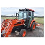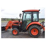 Tractor & Other Agricultural Implements: Kioti – Mod. DK35 SE – Diesel 4wd Tractor – w/409 Original Hours – Equipped w/KL351 Quick Detach Loader, Full Cab w/Heat & A/C, 43x16.00-20 NHS Rear Tires, 27x10x50x15 NHS Front Tires, 3pt, Single Remote