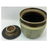 Lot: 244 - Antique Round Deep Brown Stoneware Crock w/ Large