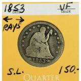 Lot: 109 - 1853 US 25c Seated Liberty Silver Quarter Dollar