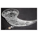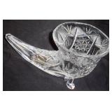 Lot: 167 - Antique Cut Glass Footed Cornucopia 13" Long