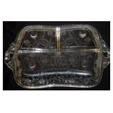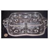 Divided 3 section relish dish, clear, with prelude pattern etching. Please ask specific questions on details, condition, and shipping prior to bidding, ALL ITEMS ARE SOLD AS IS, and the bidder will be responsible for payment. We box and ship what we
