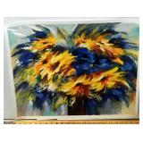It is from the numbered Edition 172 of 495. It comes with a certificate of authenticity from Park West Gallery. It is not framed. It depicts an overflowing bouquet filled with bright yellow and rich blue flowers, fading into the light backdrop
