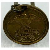 "The Father of His Country" on the front and "A Lifetime of Good Luck to Dad" on the back! Medallion measures 32 mm. Please ask specific questions on details, condition, and shipping prior to bidding, ALL ITEMS ARE SOLD AS IS, and the bidder will be