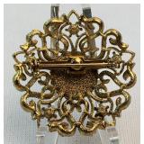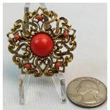 Lot: 222 - Vintage Gold Tone Sunburst Brooch w/ Orange