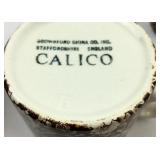 Brown transferware floral pattern, marked Calico on bottom, Brownford China. Please ask specific questions on details, condition, and shipping prior to bidding, ALL ITEMS ARE SOLD AS IS, and the bidder will be responsible for payment. We box and ship
