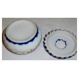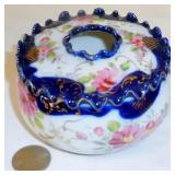 Lot: 266 - Antique Flow Blue Hand Painted Hair Receiver