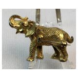 Heavy cast metal gold tone elephant. Unmarked. Nice detail. Please ask specific questions on details, condition, and shipping prior to bidding, ALL ITEMS ARE SOLD AS IS, and the bidder will be responsible for payment. We box and ship what we can to