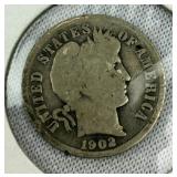 Lot: 282 - 1902 US 10c Barber Silver Dime