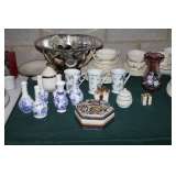 Antique Mahogany Dining Room Set consists of a large sideboard, a curved-door breakfront corner china cabinet, a double pedestal multi-turned carved double leg base dining table, a set of six lyre-shaped back chairs, the four-drawer server with additional smaller server and 3 draw pieces, French Provincial Style Sofa and Love Seat, Queen Ann Coffee and End Tables, Lamps, Antique Tufted Side Chair walnut/mahogany, Chippendale-Style Carved Mahogany Pie-crust Two-Tier Tripod Footed Table, Queen Ann Wing Side Chairs, Oval Marble /Top Victorian Walnut Parlor Lamp Side Table, Stickley Rock Maple Children's School Desk and Chair, Designer Perfumes, Desks, Office Chairs, 2 Matching Recliners, Speakers, Combination Game Table, Bowflex Ultima Exercise Equipment, Christmas items, Cameras, China, Corner Workstation, Artwork, Clocks, TV Wall Unit, Ultravision Digital TV, Outdoor Patio Set, Dresser Armoire, Oak Coffee Table and End Tables, Blue Depression Glass, Microwave, Baseball Card Collection, Sports Memorabilia, NHL Hockey Night in Canada Game, Marcy Grip Weights, Crystal, Lenox, English Ironstone Salem “Silver Elegance”, Wedgwood Barlaston of Etruria Made in England, Imperial Platinum Retroneu China, Roper Electric Dryer, Troy-Bilt Pressure Washer 2450, Household Items and Lots More. |
