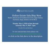 THIS IS AN ONLINE BUY NOW ESTATE SALE-PLEASE LINK TO WWW.ANESTATEINTIMEONLINESALES.COM Once you have visited our site and decided to purchase, you will Receive an Email with the following information: 1. An Invoice of your purchase. Please print it out. It is your claim check when you pick up. 2. The address, dates, and times for pick up. 3. Delivery services or shipping services that you may want to utilize if you don't want to pick your item up. Fees do apply as we do not deliver or ship your items. Gorgeous Paradise Valley Sale This sale is Fabulous and includes Vintage Hopi Kachinas, Eskimo Art, Leather Furniture, Fabulous Patio Furniture and Furnishings, a Wood Cigar Indian, a Hopi Kachina Chess Set, Incredible Native American Baskets, Gorgeous Native American Rugs, over 25 Vintage Pipes, Frederic Remington Inspired Bronzes and artwork, Interesting Watches and so much more. Let's start with the Kachinas. We have primarily Hopi Kachinas by such names as Wally Navasie, John Poleahla Jr., Adrian Poleahla, Frank Martinez, Brad Phillips, L. Lewis, Manuel L Kooyahoema, Tim Cordero, Buddy Dukepoo, Lendell Ray, Jason Wauneka, and Milton Howard. Let's not forget the Amazing Hand Carved Kachina Chess Board, signed by Abe Sakiestewska. There are several Vintage Native American Rugs & Tapestries as well as Mexican made Rugs. We even have a large Vintage Woven Basket from the Tohono O'odham Nation. You'll also see Signed Lithographs and Art from Amado Mauricio Pena, Jr, RC Gorman, Winslow Homer, Patrick Ames, Kenneth Riley, Jerome Milord, Gray Squirrel, Harold J. Brown and more. We have Eskimo Art and Lithographs, Decorative Masks and Interesting Musical Instruments, a life size Cigar Indian, Felt hats from Italy, Lucchese Cowboy Boots, Leather Coats & Vests, Cast Iron Door Stops, Hand Painted Oaxaca and Polynesian art. The Furniture is Beautiful and includes a Roll Top Desk, an Oversized Southwestern Cloth Chair with Ottoman, two Vintage Barrister Cabinets, two Oversized Brown Leather Thomasville Chairs, a Brown Leather Thomasville Couch, a Drexel Heritage Buffett, Dining Table & China Hutch, and a Distressed Brown Full Grain Leather Loveseat from Furniture International. The Patio Furniture is Custom made and high end and includes pieces from Brown Jordan. We have two Oversized Rattan Chairs, a Loveseat, a Rattan Patio Table and Side Table and Interesting Patio Decor. Please take some time to look through the many hundreds of photos and click, "Buy Now". We sincerely appreciate your patronage during this incredibly unprecedented time! Thank you so much!! Jennifer, Robert, Branden, Sarah, Chris, Patty, Gerry, Michael, Lisa
