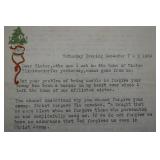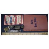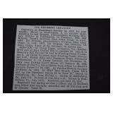 Item Description 1. Bohemian Amber / Yellow Cut To Clear Glassware 2. Bohemian Green Cut To Clear Glassware 3. Bohemian Blue Cut To Clear Glassware 4. Bohemian Maroon / Orange Cut To Clear Glassware 5. Bohemian Maroon Cut To Clear Glassware (chips) 6. Bohemian Maroon / Blue Cut To Clear Glass Bells and Egg (Blue Bell Cracked) 7. Bohemian Red Cut To Clear Glass Oil Lamp 8. 3 Hummel Goebel Figurines - Flower Vendor, Shepherd's Boy 9. 3 Hummel Goebel Figurines 10. 4 Hummel Goebel Figurines 11. Singer Feather Weight Sewing Machine 12. Wood Rolling Pins, Stoneware Jug, Otto Milk Bottle 13. Antique Cast Iron Deer Bank In Gold Paint 14. Antique Cast Iron Mutt and Jeff Bank In Gold Paint 15. Copper Clad Military Soldier, Empire State Building Statue and 2 Toy Cannons 16. Mother's Crushed Oats Antique Crystal Radio / Radio Receiving Set 17. Pressed Steel Toy Airplane, US Army Hubley Kiddie Toy Airplane and Tootsie Toy Dump Truck 18. Child's Wooden Toys Including Holgate US 999 Truck, Holgate 1212 Train, Holgate Car Hauler and More 19. Antique Children's Items Including Wood Rolling Pin, Spoons, Iron, Etc. 20. Hand Sewn Drunkard's Path Quilt Topper 102x84 21. Two Tone Stoneware Advertising Jug Campbell & McGregor Old Scotch Whiskey Scotland 22. Small Brass Microscope Made In France 23. Harrison & Morton Protection 1888-1892 Campaign Bandanna 24. Theodore Haviland Limoges France Orleans Pattern China 25. Pink Depression Glass Berry Bowl Set 26. Blob Top Bottle, Milk Bottle, Tin Cookie / Biscuit Cutters and Stoneware Crock w/ Concave Bottom 27. Child's ABC / Clock Face "At The Sea Side" Plate - Children's Clock BPCo England 28. Antique Children's Whites and Childs Quilt 29. Wooden Sailing Ship and Canoe 30. Brass Key Wind Carriage Clock w/ Beveled Glass Panels, Porcelain Dial Face 31. Swank "Will Return At" Clock and Lighter 32. Parker Alarm Clock and Key Wind Box Clock 33. Columbian Automatic Pat. Pdg. New York Arms Co. 5 Shot Revolver 34. Hopkins & Allen Mfg. Co. "Dictator" Pat. May 27 '79 Revolver 35. Blue & White Swirl Graniteware Bucket 36. Herter's Painted Wood Decoy w/ Glass Eyes 37. Wood Cutting Board 38. Turned Wood Mortar and Pestle 39. Advertising Sultana Peanut Butter Pail and Paper Label Dr. Miles Blood Purifier Bottle 40. Old Advertising Bottles 41. Platte Valley Straight Corn Whiskey Two Tone Jug 42. 2 Antique Primitive Flax Hatchel's 43. Large Pottery Planter Signed Aomk 44. Studio Art Pottery Plates and Bowls 45. Clayware / Redware Pottery Bowls 46. Clayware / Redware Pottery Bowls 47. 2 Wooly Sheep and Folk Art Sheep 48. Quantity Celluloid Animals 49. Quantity Celluloid Animals 50. Shiny Brite American Made Christmas Ornaments 51. Heavy Glass Grape Cluster Christmas Ornaments 52. Figural Glass Christmas Light Bulbs 53. Christmas Display Bottle Brush Trees 54. African Tribal Knife w/ Wood Sheath 55. Hunting Knife 56. Hand Forged Spear Tip 57. Carved Wood Indian Bust 58. Large Carved Wood Mortar and Pestle 59. 2 African Tribal Knives w/ Scabbards 60. Unusual Tribal Hand Forged Knife / Sword with Sheath 61. Carved Wood Fertility Statue 62. 2 African Tribal Weapons ??? 63. Vintage Field Telephone in Leather Case 64. 2 Nikkorex Nippon Kogaku Tokyo Vintage Cameras and Canon Zoom Lens 65. Realist Stereoscopic Viewer Model ST 61 and Kodak Kodaslide Stereo Viewer 66. 2 Vintage Astatic Model No.77 Microphones 67. Vintage Braun PS 600 Turntable - Working Condition Unknown 68. Yamaha 3 Part Rack System - Natural Sound Stereo Receiver R-9, Stereo Cassette Deck K-720 and Graphic Equalizer GE-40 - Working Condition Unknown 69. Pair Epicure M50 Speakers - Working Condition Unknown 70. French Brass Trumpet - Couesnon & Cie 71. WWI Metal Helmet 72. Military Medals 73. US Battle Ship Main Commemorative Plate 74. CS (Confederate States) Brass Belt Buckle - Authenticity Unknown 75. Virginia Inox Italy Stag Handle Switch Blade Knife 76. 5 Pocket Knives - Herbrand PK105, Schrade Walden 77. Vintage Henriette Military Hat Women's Powder Compact. U.S. Army Version, Made In USA, Circa 1940s 78. Tin Type of Man w/ Magic Lantern Projector 79. 3 Early Knives w/ Wood Handles - Belge Inox Gembloux 80. Boehm Porcelain Christian Era Collection Spirit of Bethlehem Three Wise Men, Artist Signed, 12" Version w/ Original Shipping Box 81. Boehm Porcelain The First Noel Joseph, Mary and Baby Jesus Figures 82. Castille Porcelain Figurine 83. Lladro Porcelain Dancing Couple Figurine 84. Lladro Porcelain Girl w/ Basket Figurine 85. Lladro Porcelain Girl w/ Ducks Figurine 86. Hummel Goebel 1492-1992 The Quincentennial of America's Discovery Limited Edition Land In Sight Figurine w/ Original Box 87. Hummel Goebel Chapel Time Display Piece (Bird Missing Tail Feathers) 88. Hummel Goebel Heavenly Harmony Display Piece 89. Hummel Goebel Her Shining Hour Chariot Byi Figurine 90. Hummel Goebel Umbrella Girl Figurine 91. 2 Hummel Goebel Figurines - A Childs Prayer and Bless Us All 92. 4 Hummel Goebel Figurines 93. 4 Hummel Goebel Figurines 94. 6 Royal Australian Proof Coin Sets 95. The Republic of Iceland 1981 New Coinage Proof Set, 15,000 Mintage 96. 3 Certified 2007 George Washington $1 Coins 97. Group of Stamps, Index Cards and Envelopes 98. 1835 Letter 99. Henry Mills Alden Autograph Signed Letter Dated 1902 100. Navy Bureau of Construction & Equipment Letter Dated Jan. 1844 101. Elizabeth Missing Sewell Autograph - Signed Letter 102. Conditions of Auction Sale Dated March 1836 Letter 103. 1828 Letter 104. Christmas Feather Tree - 1997 by Twin Feather Trees 105. Glass Christmas Ornaments 106. Vintage Christmas Including Bottle Brush Tress, Pine Cone Men, Miniature Putz Houses 107. Quantity Celluloid Animals 108. Christmas - Santa Claus Figures, Battery Operated "It Blinks" Xmas Trees, Etc. 109. Bamboo Shelf Unit 110. Primitive Crock Bench 111. Walnut Washstand w/ Backsplash 112. Folk Art Patriotic Glass Bead Decorated Plant Stand 113. Equipto 18 Drawer Metal Storage Bin 114. Antique Windsor Arm Chair 115. Counter Top Glass Displ