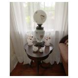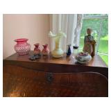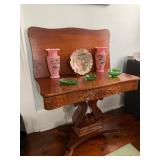 -Antique Mahogany 4 Poster Full Tester Rope Bed that has been properly converted for a standard size mattress -Antique Butler’s Chest Secretary -Antique Blanket Chest -Marble Top Washstand -Antique Empire Bonnet Chests -Antique Shaving Mirror -Antique Ladies Inlay Secretary -Antique Side Chairs -Antique Side Walnut and Mahogany Tables -Antique Tole Painted Single Drawer Table -Victorian Rocker -Large Antique Maple Knockdown Wardrobe (64”l x 24”w x 87 ½”h) -Cane Bottom Chairs -Eastlake Dresser -Antique Queen Ann Writing Desk -Walnut Washstand -Small Antique Handpainted Cupboard - Empire Sofa -Leather Wing Chair -Queen Frame, Mattress, & Box Spring -Antique Leather Top Game Table -Antique Drop Leaf Tables -Antique 12-pane Corner Cupboard -Pr of Mid Century Cherry 4 Poster Twin Beds -Kidney Table Vanity -Antique Walnut Knockdown Armoire with Mirrored Doors -Mirrored Coffee Table -Antique Mahogany Game Table -(8) Carved Crest Chairs -Antique Jelly Cabinets -Antique Wicker Porch Furniture -Antique Miniature Wall Cabinet -Antique Triple Decker Shelf Clock -Original Early Mid 19th Oil on canvas portrait painting by Jacob Eichholz -Original Oil on Canvas Early 19th Century "Lady Harrington" Painting Attributed to Sir Thomas Lawrence -Original Oil on Canvas Late 19th Century Early 20th Century painting by Roldolfo Paoletti -Flow Blue China -Authentic Antique Pharmaceutical Apothecary Jars -Waterford Lismore -Booth’s “Real Old Willow” China -Royal Worcester “Eve Sham” China -“Tea Leaf” Ironstone China -Limoges China -Old Paris Vases -Victorian Art Glass -Antique Linens -Vintage Hats & Hat Boxes -Vintage Clothes -Elizabeth Womack Greenup Co. Artist Painting of a Cat & Large Portrait Painting -Large Collection of Greenup Co. Artist Florence Lovett Watercolors, oils, pastels, Photographs, sketches etc -Cranberry Hanging Light Fixture *SEE BOTTOM NOTE* -Antique Lamps -Jesse Stuart Books (Some First Editions-Some autographed) -Personal Letter from Jesse Stuart -Antique Shadow Box Frames -Salts -Antique Pattern Glass -Majolica -Art Supplies -Kitchen Misc -Holiday Décor --Household Misc -Sterling Flatware “Old Colonial” by Towle -Sterling Flatware “Norfolk” by Gotham monogrammed with a “C” -Other misc. Sterling Flatware, candleholders, vase, cream & sugar
