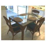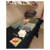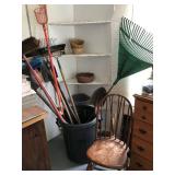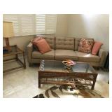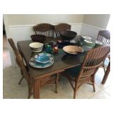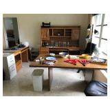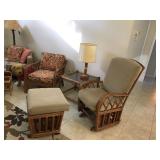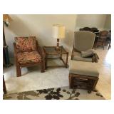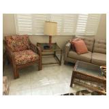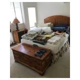 Sofa, loveseat, rattan sleeper sofa, chairs & dinette set; grandfather clock, Sticks brand floor and 2 table lamps, dining table, king bed set, queen bed, dresser, chest, platform rocker and ottoman, coffee & end tables, cedar chest, night stands, Stauer watches, shelves, book cases, LG TV, mirrors, art supplies, books, area rug, pottery, cabinets, glassware, desk, file cabinets, Amana refrigerator, patio furniture, Ryobi pressure washer, hand and yard tools, Weber grill, golf clubs, wheelbarrow, 3 bikes, fishing poles, linens & full kitchen |