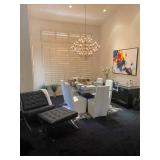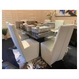 · Glass Top Dining Table with 6 White Chairs