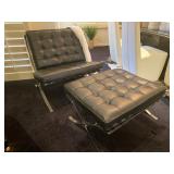 · Black and Stainless Lounge Chair with Ottoman