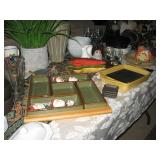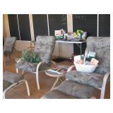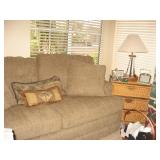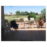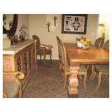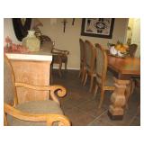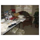 This is a beautiful sale, to highlight -Drexel Heritage ultra-suede sectional; Casual glass top dinete set with four chairs; Custom framed art pieces; rattan-seat bench; Tommy Bahama armoire; like-new king mattress set; Lazy Boy sofa sleeper with blow up queen mattress; Patio set with custom upholstered cushions; chiminea; child bicycle; two flat screen televisions; unique over sized coffee table with carved trim/metal and two drawers; Matrix metal art piece by Vickere; Drexel Heritage all wood dining room table with two leaves and eight beautiful upholstered chairs; Ekorness recliner with stool; large leather bound round mirror; Drexel Heritage buffet and server both with off white travertine top; ladders; office chairs; two recliners; storage stools; beautiful seven drawer dresser; electronics; books; much women fine clothing sizes 12 - 14; patio heater; dresser with matching chest and two night stands; 1990 gas Club car golf cart - great shape, runs perfect; much household decor and kitchen items. |