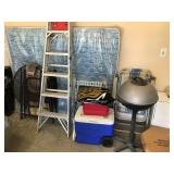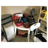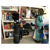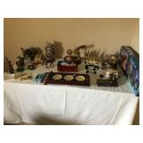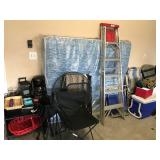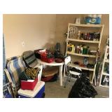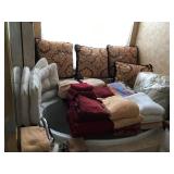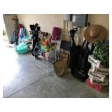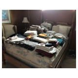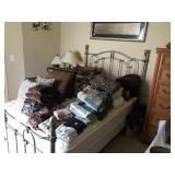 African Theme Queen bed set, full bed set, leather sofa & loveseat, like new sleeper sofa, dinette, dining room set, coffee & end table set, set of dishes, silver plate, lamps, framed prints, mirrors, patio set, books, TV’s, stereo system, lots of bed, bath, and table linens, blanket chest, 6 large clay pots, full size sofa bed mattress, Hogan golf clubs, lady’s clubs, ladders & yard tools |