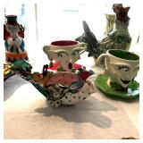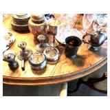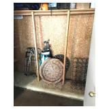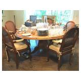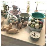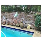 19th century mahogany wine cooler, fall front desk, blanket chest, & French dough box, Lalique & Steuben stemware, Baccarat, Waterford, other glassware, modern glass, sterling, silver plate, modern glass coffee table, 6 armchairs from Pierre Deux, round dining table, original art, Portmeirion, Spode, McKenzie-Childs, Block, Rosenthal & other china (no sets), copper cookware & bucket, modern sculpture, antique metal dollhouse, Pennsylvania Dutch style painted cabinet, tray table, canes, Armoire, large record collection, 2 TVs, pool/patio furniture, 2 nice mirrors, cookbooks & other books, lamps, pair of swivel easy chairs, dartboard, 2 Bose radios, staghorn ferns, Fire King safe, File cabinet, Craftsman tool cabinet, garage items, lots of nice planters & clay pots, table linens, nice decorative accessories, king headboard, & kitchenware. Some items not yet unpacked. |