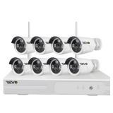 8-channel Full HD wireless NVR Pre-installed 1TB hard drive 8 indoor/outdoor wireless bullet cameras feature 2.1-megapixel sensors, double the resolution of standard 720p HD IR arrays illuminate the scene up to an unprecedented 100' in total darkness Up to 1000' outdoor wireless range View your Revo Wireless cameras from anywhere using the Revo Wireless Smart Phone/Tablet app Installation is quick and easy; wireless video transmission eliminates the hassle of running cables Plug the 8-channel wireless Network Video Recorder and cameras into a nearby power outlet; the Auto-Pair technology will seamlessly pair the cameras to the recorder to start streaming Full HD video Compatible with iOS and Android