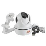 Wireless P2P indoor security camera for home surveillance Full HD (1080p) footage for crystal-clear viewing with bright colors 4mm lens Progressive-scan CMOS image sensor 360° full viewing with pan, tilt and 107° viewing angle Remotely control rotation from your mobile device Remote monitoring from your mobile device Supports 4 viewers at the same time Built in speakers and microphone for 2-way audio Motion detection recording; camera will take photos, video and push alerts to your phone Infrared night vision with 6 infrared LEDs Ethernet port SD memory card slot (card not included) Includes wall mounting bracket and hardware