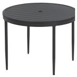 3-pc. set includes 2 rocker chairs and round side table Table has slatted top; 20" diameter x 20"H Chairs approx. 36-3/4"W x 21-1/2"D x 33-3/4"H; 225-lb. weight capacity Sturdy steel frames with black finish Weather resistant Assembly required