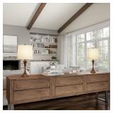 Morocco 27 in. Navy Glass Vase Table Lamp with Off-White Shade (Set of 2)