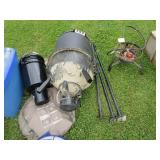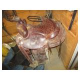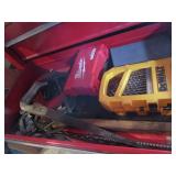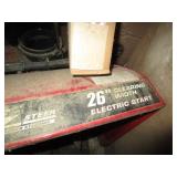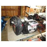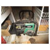 Tools/Horse Items: Craftsman DGS6500 lawn tractor; Craftsman snow blower; Fimco trailer sprayer; dump lawn trailer; wheelbarrow; garden disk; manual log splitter; Hitachi compound miter saw; shop vac; elec. pressure washer; generator; circular saws, drills, & other power tools; table saw; nursery wagon; battery jump boxes; toolboxes; sockets, wrenches, screwdrivers, & other hand tools; Poulan chainsaws; alum. extension ladder; Black Max 27 gal. air compressor; sausage stuffer; iron bell w/cradle; deer feeders; fishing rods & reels; live traps; hunting items; many 12 & 20 ga. shotgun shells; rifle & pistol ammo; western saddle; bits, bridles, & other horse tack; saddle racks; hay feeders; water troughs; feed buckets; misc. horse items; many misc. shop & automotive items.