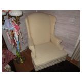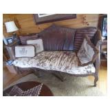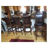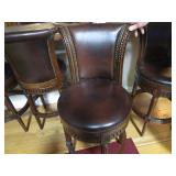 Furniture: Carved wood sofa & matching chair w/leather upholstery; (4) leather swivel bar stools; (2) wing back chairs; other furniture and household items. Check online closer to auction day for more details.