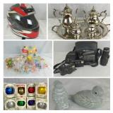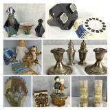 Sterling Silver Flatware Set Gorham Sterling Silver Candlesticks and Salt and Pepper Fenton Glassware Fiestaware International Silver Butler Set Isabelle Bloom Vintage Sawyer View Master and 18 slides Vintage Crystal and Silverplate Cruet Set Weller Pottery Bell Motorcycle Helmet Much Much more |