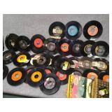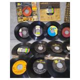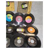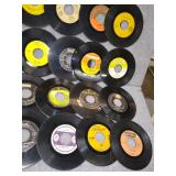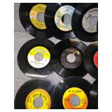Small Record Stand & 84 - 45's ( Michael Jackson, Journey, Foreigner, Kenny Loggins, Billy Joel, Cher, Michael Bolton, Frank Sinatra, The Temptations, Fleetwood Mac, John Cougar Mellencamp, The Romanics, & More) |