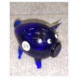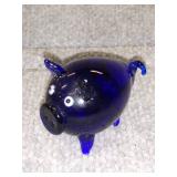 Cobalt Blue Art Deco Glass Pig (2") |