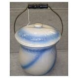 Blue/White Porcelain Pot with Lid (Pot CRACKED on one side, lid has chips) 11.5" T x 10.5"D |