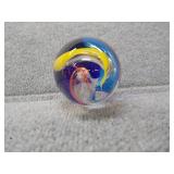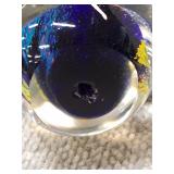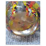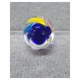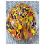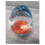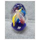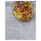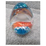Yellow, Orange, & Blue Egg Shaped Glass Paperweight - 3 1/4" D, 3 3/4" H |