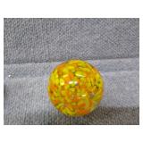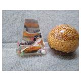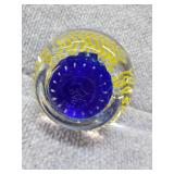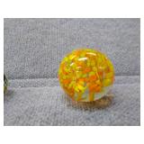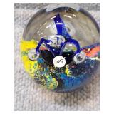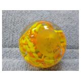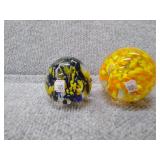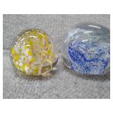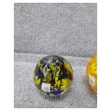 2 Glass Paperweights - Blue & Yellow - 2 1/4" H, 2 1/4" D, Orange & Yellow 2 3/4" H, 2 3/4" D |