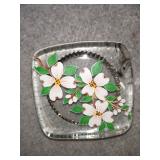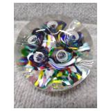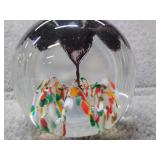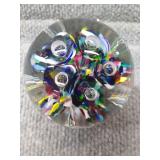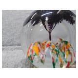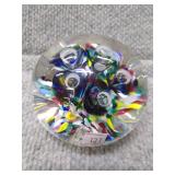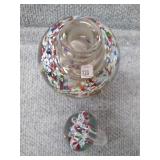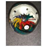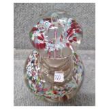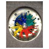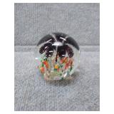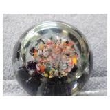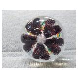 Multi-Colored Black Floral Glass Paperweight Gentile Class Company (Star City, WV) - 3 1/4" D, 3" H |