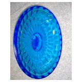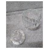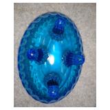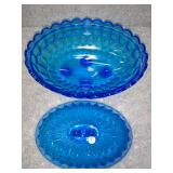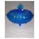 Blue Thumb Print 4 Footed Covered Candy Dish - (2 chips on rim of lid) 6 1/2" Long, 5" High, 5" Wide |