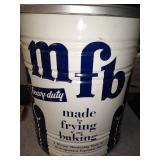 MFB 110 LB Shortening Can - 20" Tall, 16" Diameter - Very Good Paint! |