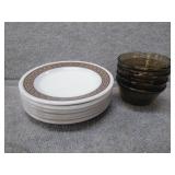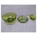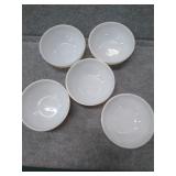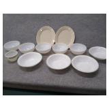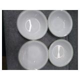 5 White Corning Bowls, 4 Corelle Green Rim Bowls, Corning Green Flower Bowl, & 2 Comcor by Corning Ware Oval Plates |