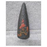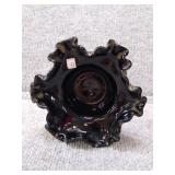Black, Orange, & White Floral Glass Paperweight - 3 3/4" D, 3 1/2" H |
