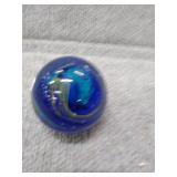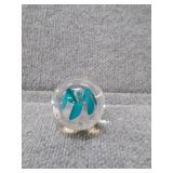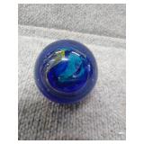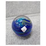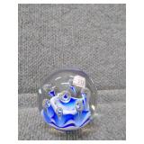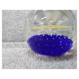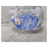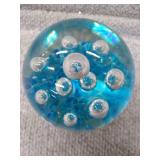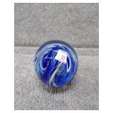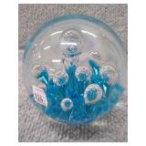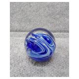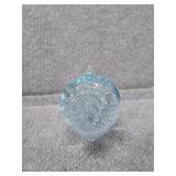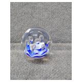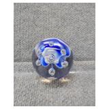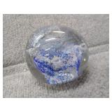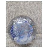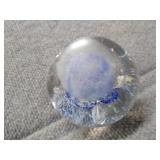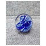 Blue & White Bubbling Swirl Glass Paperweight - 2 3/4" D, 2 3/4" H |