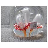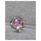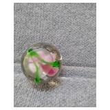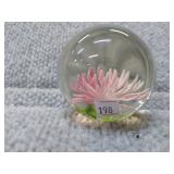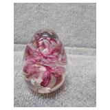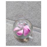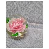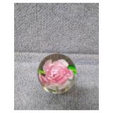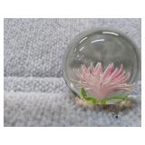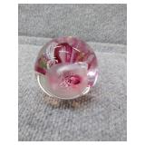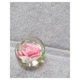 Pink Floral Glass Paperweight - 2" H, 2 1/4" D |