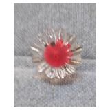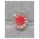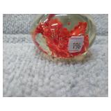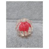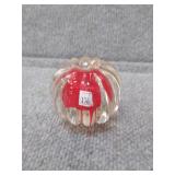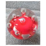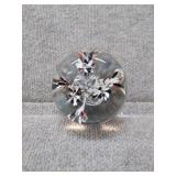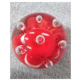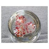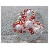 Red & White Floral Burst Glass Paperweight Gentile Class Company (Star City, WV) - 3 1/4" D, 3" H |